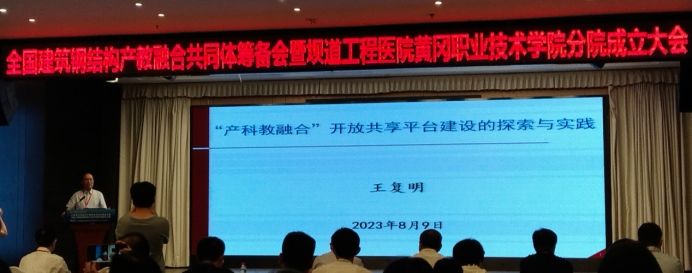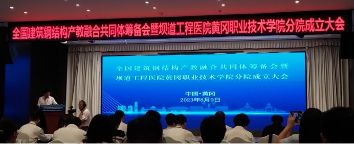 8月9日,全国建筑钢结构产教融合共同体成立大会暨坝道工程医院黄冈职业技术学院分院成立大会在黄冈举行,我校bat365在线中国官网登录入口行政负责人汪耀武、产教融合科科长刘长海应邀参会。