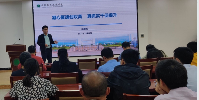副院长伍根、副书记郭燕分别就现代职教体系建设改革11项重点任务和学院年度目标责任推进落实作了具体工作布置,强调各项工作要以教学为中心、以学生为主体,聚焦重点项目,提升教学质量,推进内涵建设,落实“三全育人”。