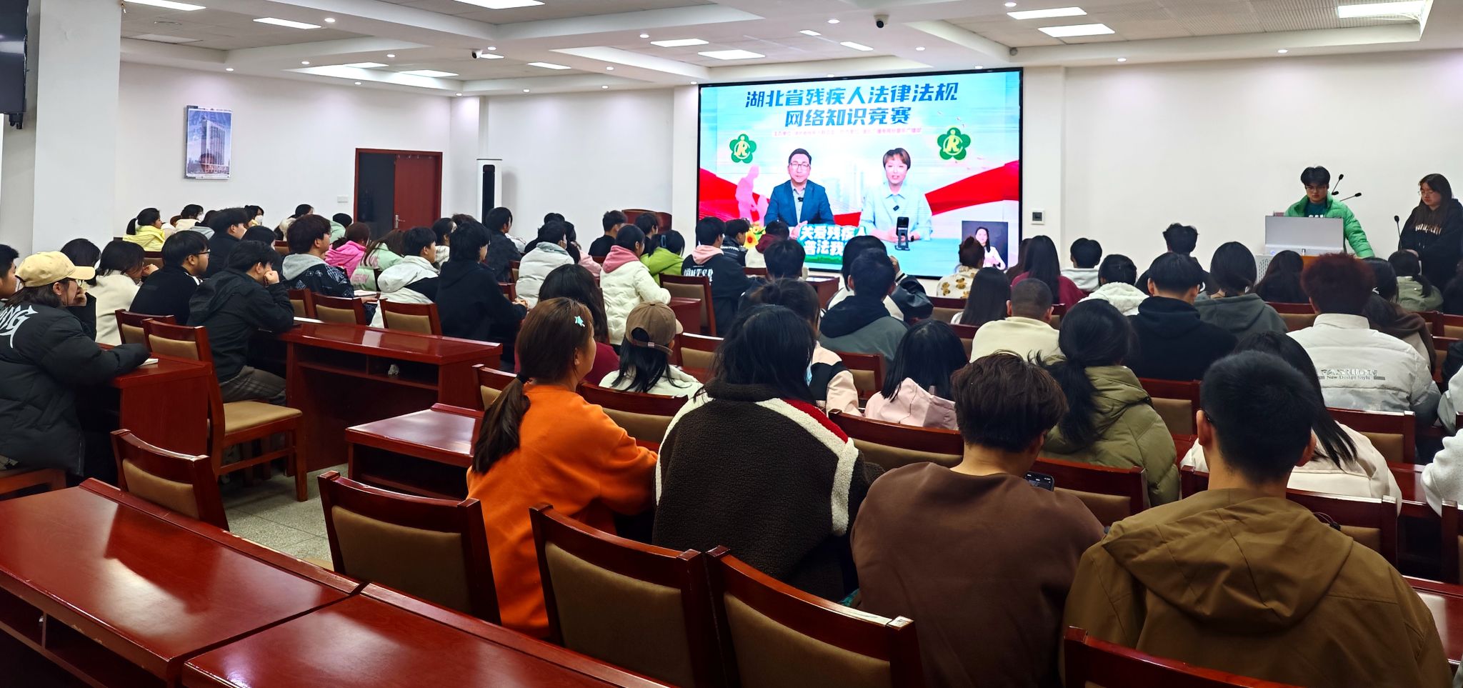 为进一步推动bat365在线中国官网登录入口的法治教育工作,增强对残疾人权益的关注和保护意识,提高学生的法律意识和社会责任感,12月9日,bat365在线中国官网登录入口组织学生干部在211报告厅观看了残疾人法律法规网络知识竞赛,此次活动得到了同学们的积极响应和参与。