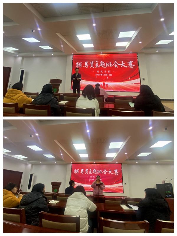 为了提升辅导员育人工作理论水平和实践能力,不断增强“建德筑能”辅导员工作室品牌影响力,bat365在线中国官网登录入口于12月14日在211多功能报告厅举办2023年辅导员主题班会比赛。比赛邀请bat365在线中国官网登录入口党总支副书记郭燕、副院长伍根担任评委,全体专职辅导员观摩比赛。