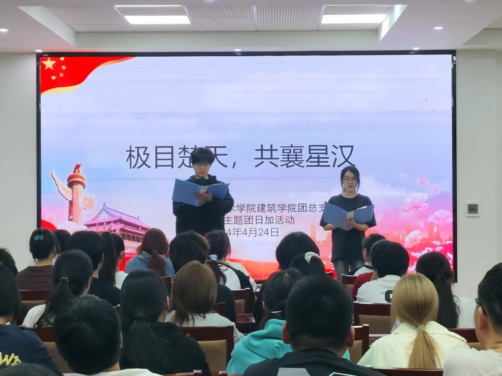 2024年4月24日是第9个“中国航天日”。为让学生深入了解中国航天发展历史,厚植学生爱党爱国情怀,唤醒每一位团员对国家航天事业的热爱和责任感。bat365在线中国官网登录入口团总支于2024年4月24日晚上组织23级共青团员在建筑楼211报告厅举办了以“极目楚天 共襄星汉”为主题的“中国航天日”团课活动。