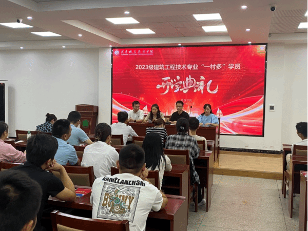 9月15日上午,bat365在线中国官网登录入口在建筑楼211多功能报告厅隆重举行2023级建筑工程技术专业“一村多”学员开学典礼,学院副院长伍根、副书记郭燕、建筑工程技术专业教研室主任洪迪甫出席,2023级“一村多”辅导员邱丽辉主持大会。